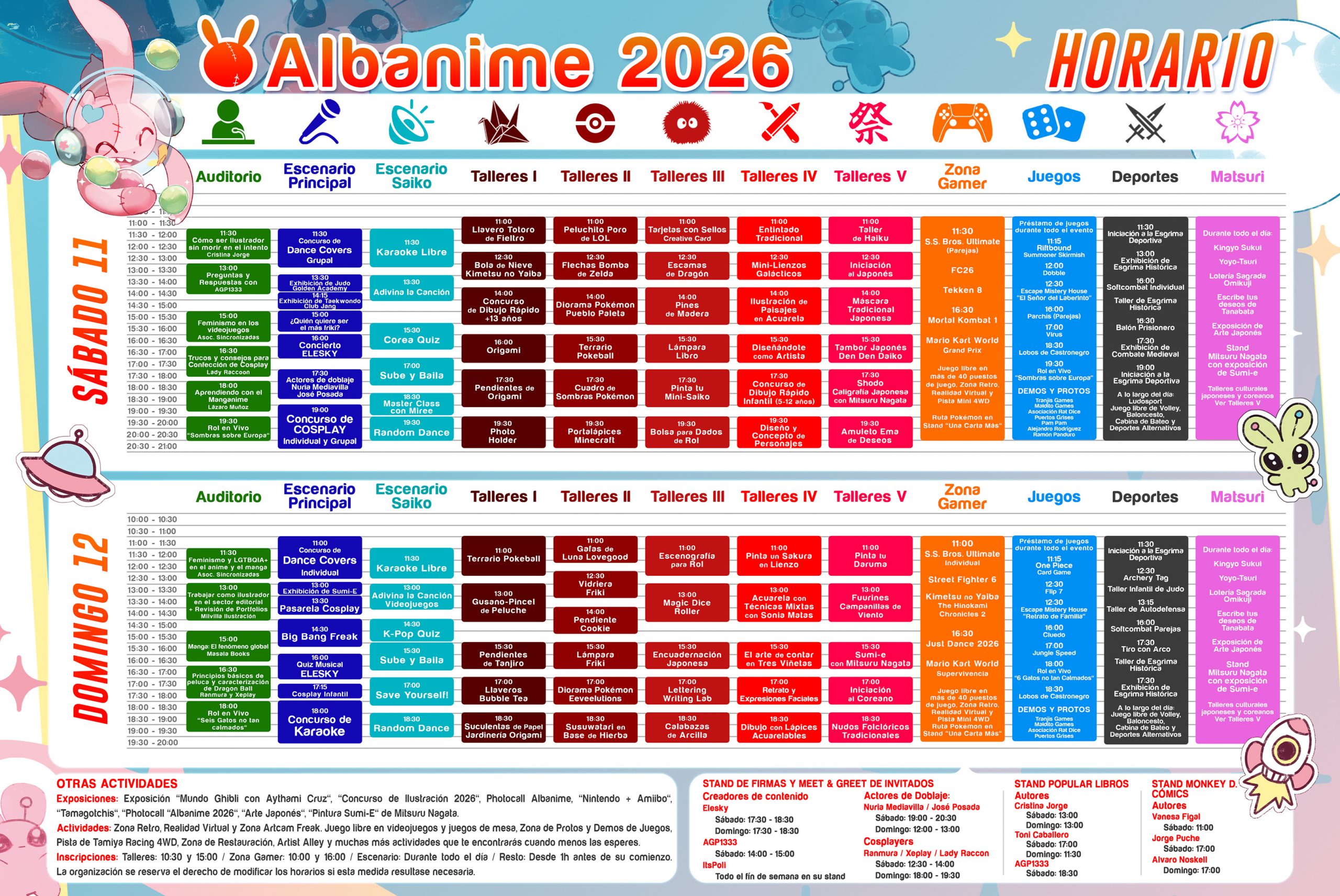 En Albanime podrás disfrutar de dos días en los que no faltarán las actividades que más os gustan. Más de 200 maneras de divertirse con los amigos que ya tengas y muchos nuevos que harás en el evento. Talleres, videojuegos, juegos, zona deportiva, k-pop, concursos, artist alley, stands comerciales con merchan de las películas y series que más te gustan y con grandes invitados que harán de este evento una gran experiencia.